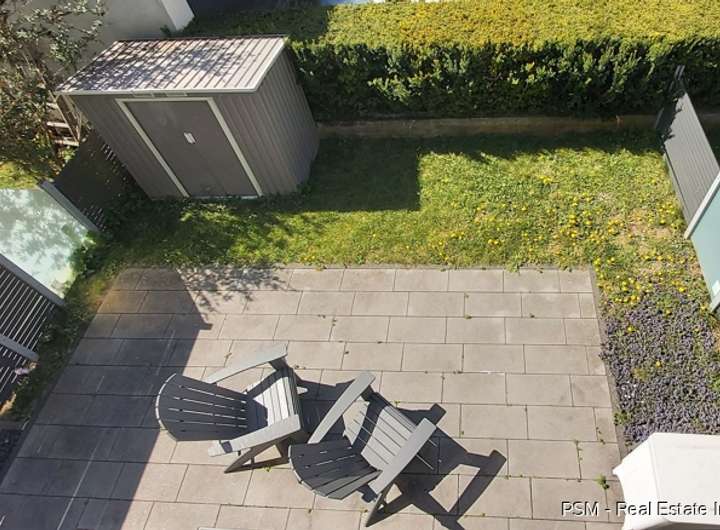 Von da aus gelangen Sie direkt zur schönen großen Sommerterrasse (20 M²) mit Garten.