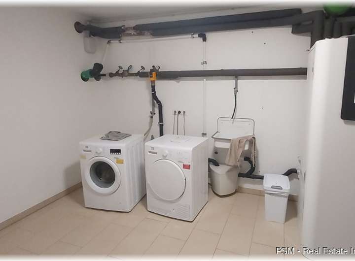 Das Kellergeschoss ist mit einem großen Hobbyraum (21M²), ein Kellerraum, ein Heizungsraum und ein Wirtschaftsraum ausgestattet. Alle Räume sind mit einer Fußbodenheizung ausgestattet separat einstellbar.