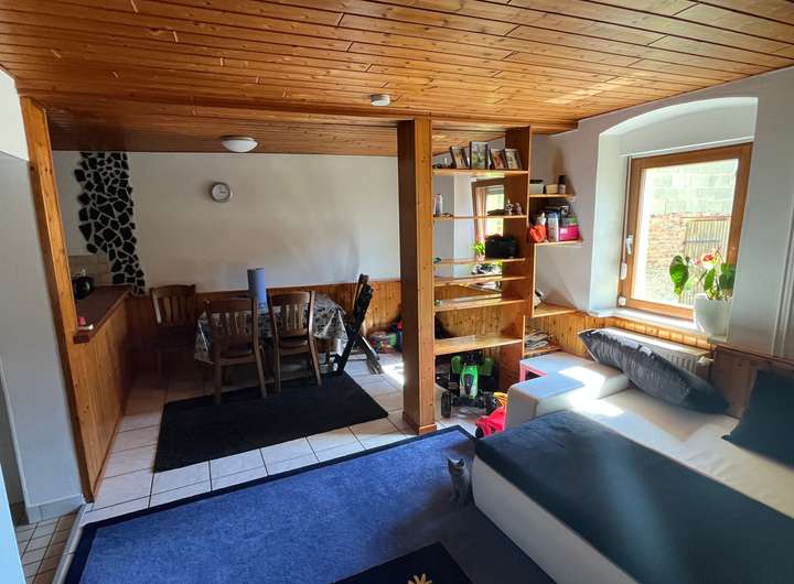 Die Gebäude ist mit Natursteinen gemauert und besitzt einen Naturkeller.
