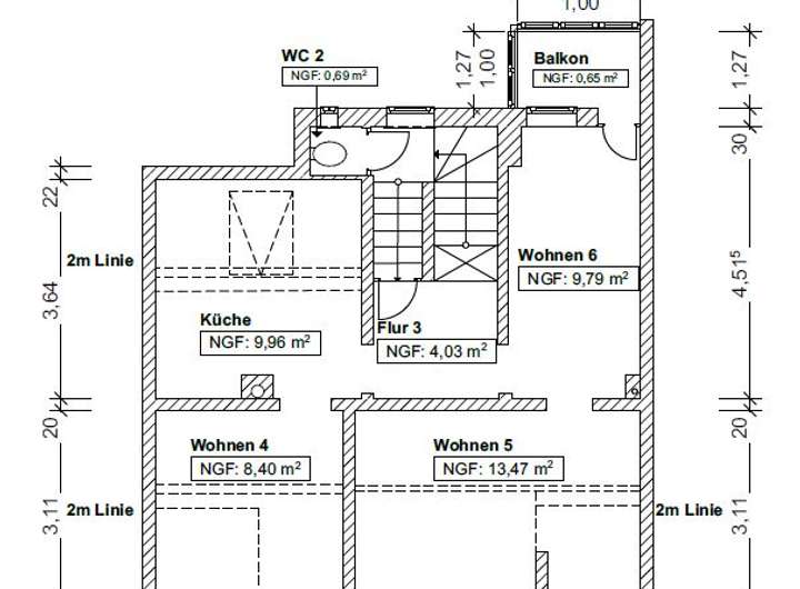 Mit dem Betreten des Hauses befinden Sie sich zunächst im Treppenhaus. Dort finden Sie eine Toilette, den Kellerabgang, den Zugang zum Anbau sowie den Zugang zum Hochparterre vor. Im Hochparterre liegen drei Wohnräume sowie das Duschbad. Hervorzuheben ist, dass diese Etage über ca. 3 Meter Deckenhöhe verfügt, was eine besondere Atmosphäre schafft. Über ein weiteres Treppenhaus, samt weiterer Toilette, gelangen Sie in das Obergeschoss der Hauses. Im Obergeschoss finden Sie drei weitere Wohnräume, die Küche sowie eine vollgeschlossene Loggia vor.