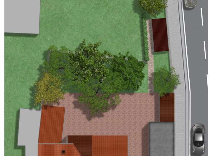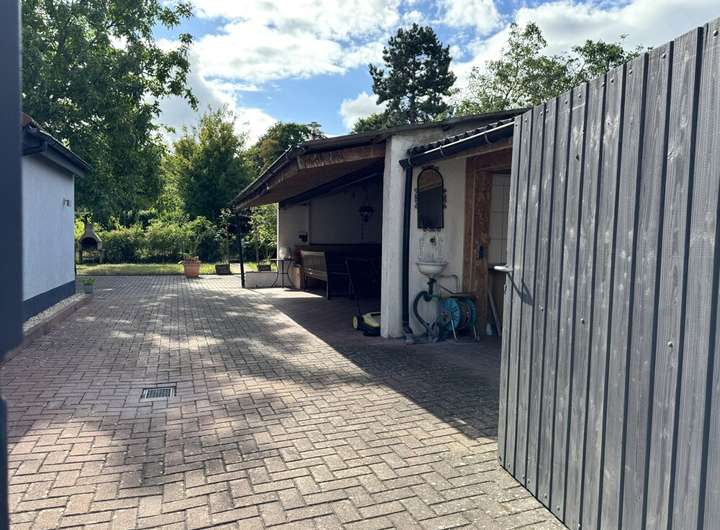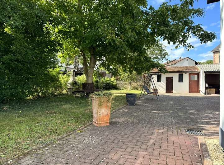 Zum Haus gehört ein großzügiger Hof, der viel Platz für Kinder zum Spielen, zum Abstellen mehrerer Fahrzeuge oder einfach für das entspannte Miteinander im Freien bietet.
