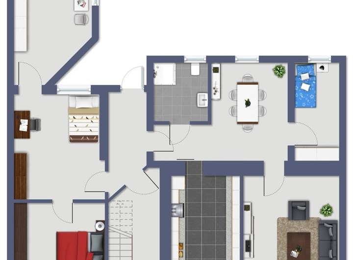 Auch im Dachgeschoss finden wir eine ähnliche, gut strukturierte Raumaufteilung. Neben den Wohn- und Schlafräumen bietet die Etage ebenfalls Küche und Bad, sodass sie als eigenständige Wohneinheit genutzt werden kann. Aktuell ist das Dachgeschoss vermietet und erwirtschaftet für die Eigentümer verlässliche Mieteinnahmen – eine wertvolle Unterstützung bei der Finanzierung der Immobilie und ein attraktiver Pluspunkt für Kapitalanleger.
