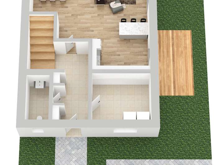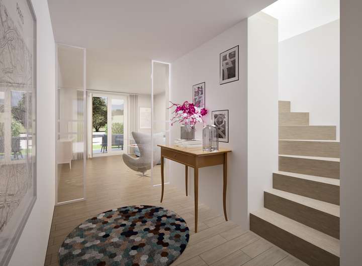 Zusätzlich werden die Straßen, Zuwege, Stellplätze und Allgemeinflächen durch den Projektentwickler erstellt. Die Gärten und Terrassen im Erdgeschoss müssen von den Käufern selbst angelegt werden.