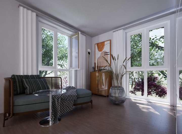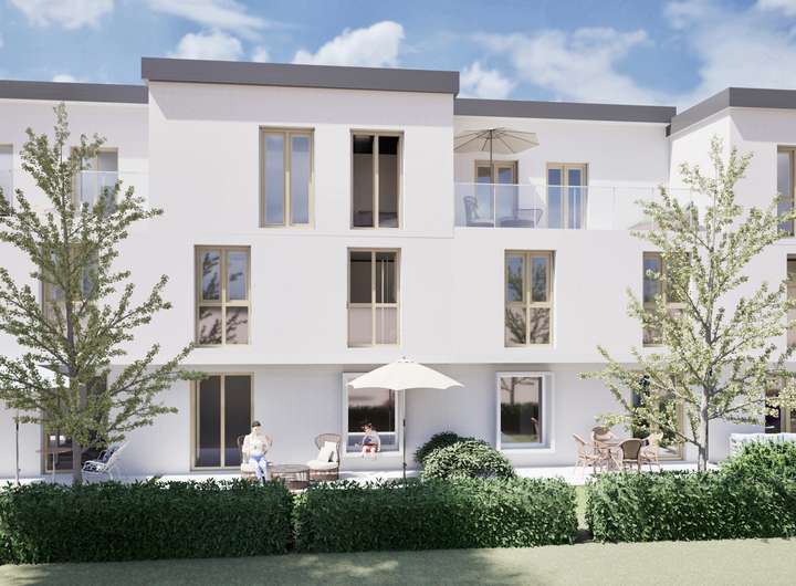 Die Familien, die in den Glücksgarten ziehen, werden Teil einer lebendigen Gemeinschaft. Kinder spielen auf den Wiesen, die einst verwaist waren. Die Häuser bieten ein großzügiges Wohnzimmer mit offener Küche sowie vier Schlafzimmer, mit der Möglichkeit, auf insgesamt fünf Schlafzimmer zu erweitern. Zusätzlich ist ein zweites Badezimmer im Dachgeschoss optional möglich.