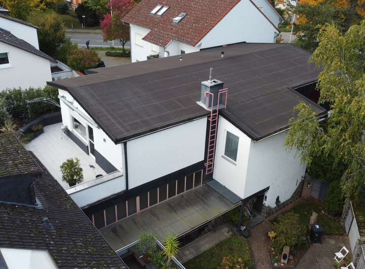 Das im Jahre 1964 in klassischer Massivbauweise errichtete Werkstattgebäude wurde 1976 um eine großzügige Wohnung (Penthouse-charakter) erweitert. Das Gebäude befindet sich in ordentlichem Zustand und ist nur wenige Schritte von guten Einkaufsmöglichkeiten, Schulen, Kindergärten, Restaurants und Ärzten entfernt. Die gepflegte Wohnung, besticht durch ca. 145 m² großzügig und sinnvoll aufgeteilte Fläche mit geräumigem Wohn-Essbereich, einem großen Dusch- und Wannenbad mit Doppelwaschtisch und einer großen Einbauküche mit Vorratsraum, die bereits im Kaufpreis enthalten ist. Die große Sommerterrasse (Süd-West Ausrichtung) sowie eine zweite überdachte Loggia (Nord-Osten) bieten Ihnen viele Möglichkeiten und laden nicht nur im Sommer zum Verweilen ein. Praktische Einbauschränke (Küche) und eine Sonnenmarkise auf der Terrasse sind weitere Ausstattungsdetails dieser schönen 4 Zimmer Wohnung. Drei Stellplätze vor der Halle direkt am WEG geteilten Haus und mehrere geräumige Kellerräume runden dieses Angebot ab. In der Halle kann ein Unternehmen Platz finden oder, nach einer zu genehmigenden Nutzungsänderung, weiterer Wohnraum (mit Loftcharakter) entstehen. Hinter und vor dem Haus befinden sich kleine Gartenflächen und Grünbereiche mit mehreren Unterstellmöglichkeiten. Die Immobilie wird mit Fernwärme beheizt (Wärmeverteiler erneuert). Die Abwassertechnik, die Dacheindeckung und die Fenster wurden in den letzten Jahre saniert oder erneuert.