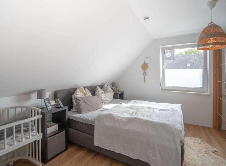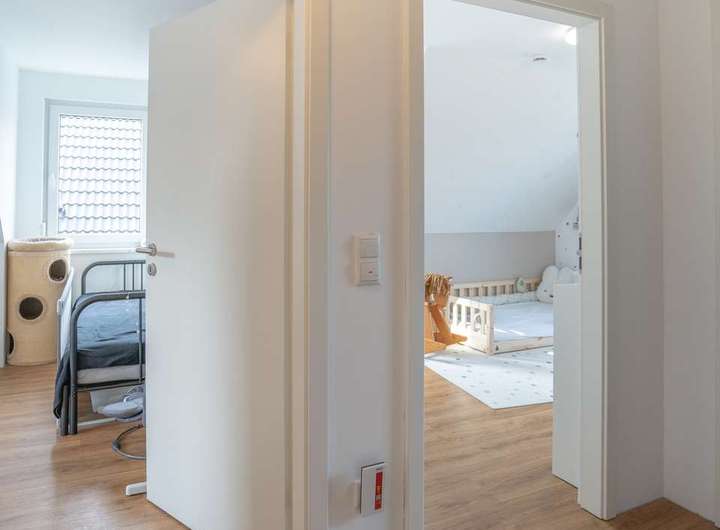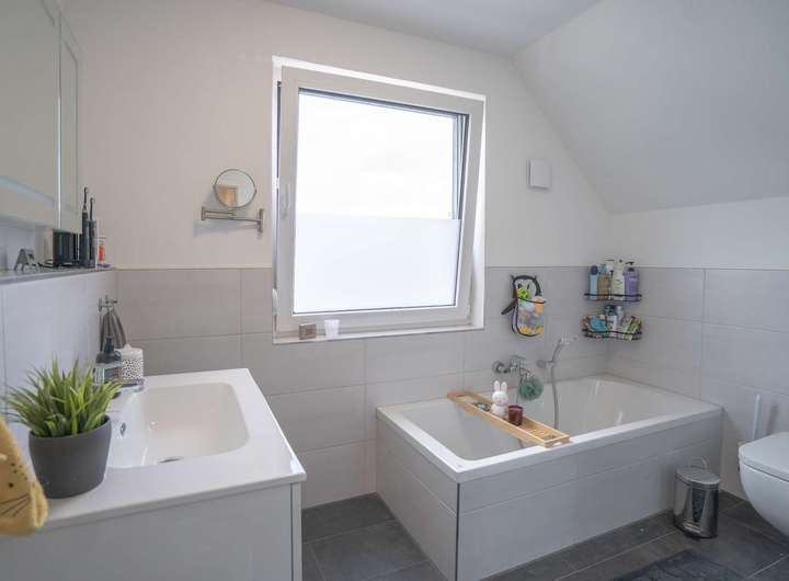 Im Obergeschoss erwarten Sie drei gut geschnittene Schlafzimmer, die sich flexibel als Kinderzimmer, Büro oder Gästezimmer nutzen lassen. Das Familienbad punktet mit Badewanne und separater Dusche – ideal für die ganze Familie.