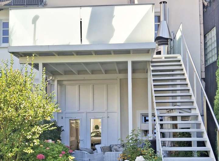 Mit eigenem Eingang ( incl. integrierter Garagenlösung - so kommen Sie trocken in Ihr Heim ) und einem kleinen aber feinen Gartenanteil.