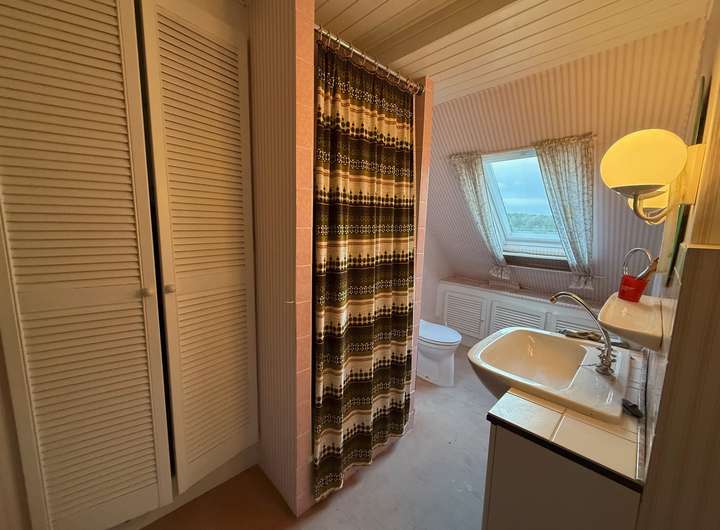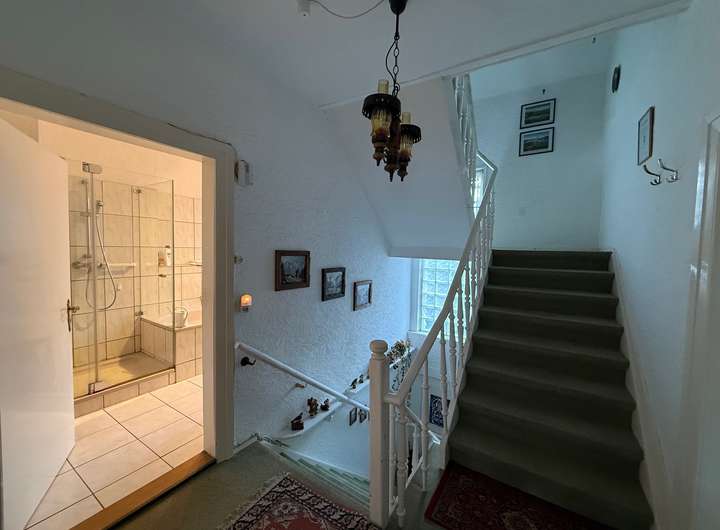Das Dachgeschoss ist ausgebaut und hier gibt es ein kleines Badezimmer mit Dusche, einen großen Dielenbereich mit Zugang zum Spitzboden und auch in dieser Etage drei weitere Zimmer.