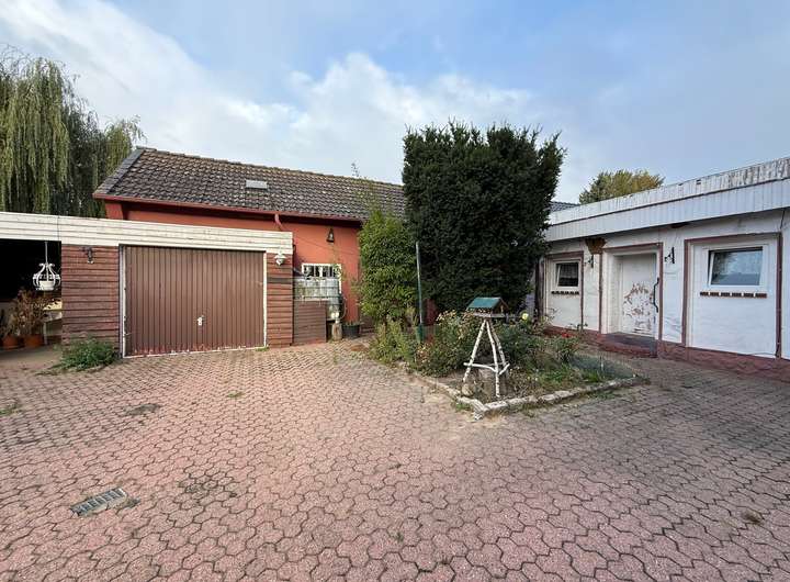 Zu dem Objekt gehört ein Innenhof, eine Garage, ein Nebengebäude mit Werkstatt und ein Garten (der hintere Teil des Gartens ist gepachtet und gehört nicht zum Kaufumfang).