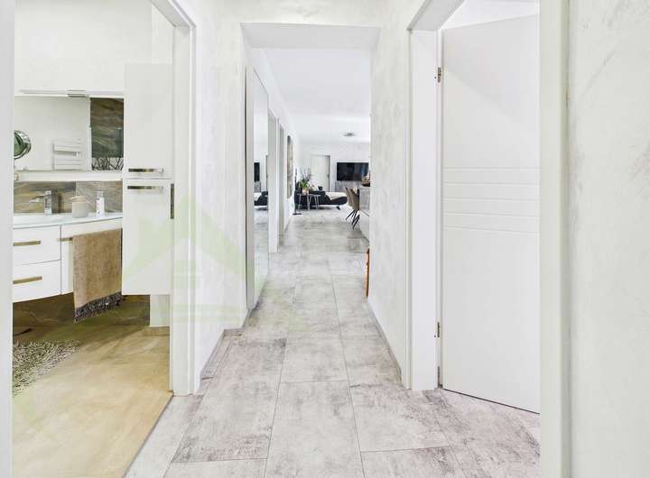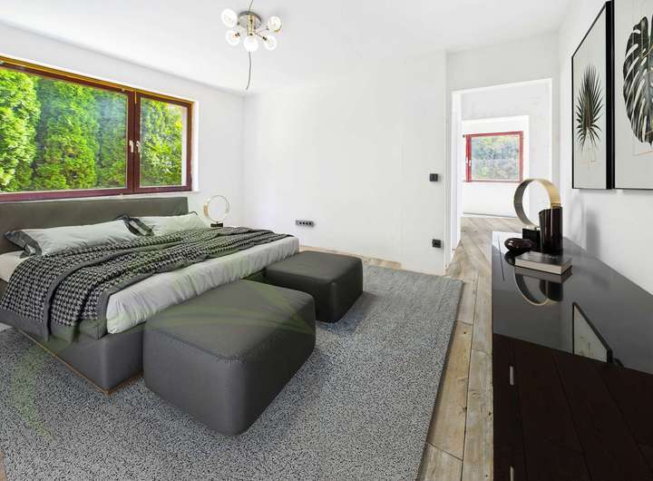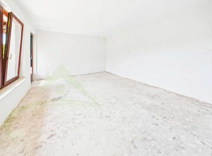 Die Einliegerwohnung ist bereits bezugsfertig und sofort nutzbar – ideal für Mehrgenerationenwohnen oder zur Vermietung. Die Hauptwohnung ist auf der linken Seite im Rohbauzustand und im rechten Bereich renovierungsbedürftig und bietet die perfekte Gelegenheit, eigene Wohnideen umzusetzen.