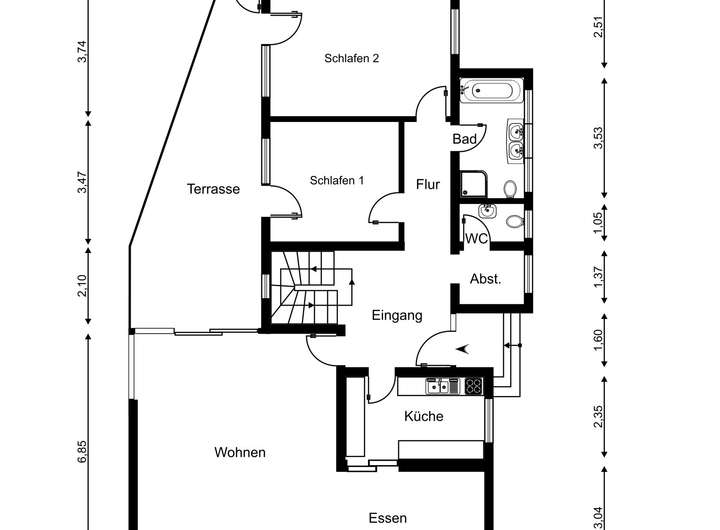 - Dank der durchdachten Raumaufteilung und der verschiedenen Zugangsmöglichkeiten eignet sich dieses Haus hervorragend für die Kombination von Wohnen und Arbeiten – perfekt für ein Architekturbüro, eine medizinische Praxis.