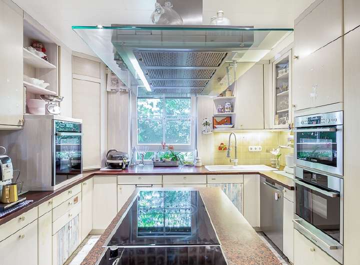 - Einbauküche mit hellen Fronten (1994) und Markenelektrogeräten (2018)