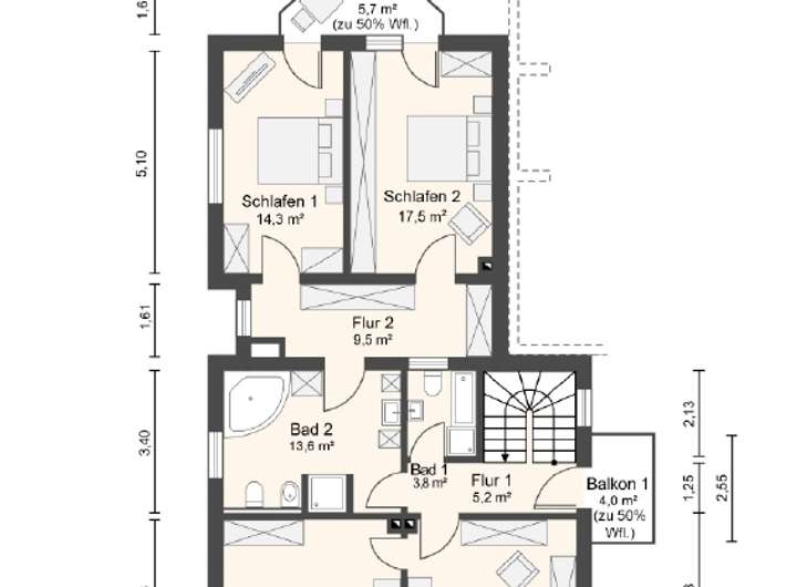 - Balkon in Nordwestausrichtung (5,7 m²)