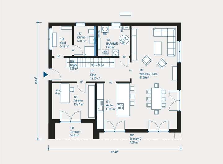 - Hochwertige Energieeffizienz durch die KFW55-Standard-Eigenschaften.