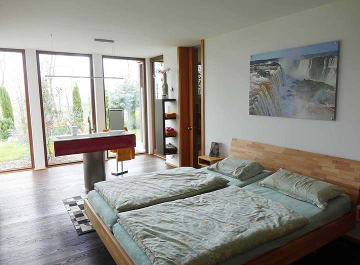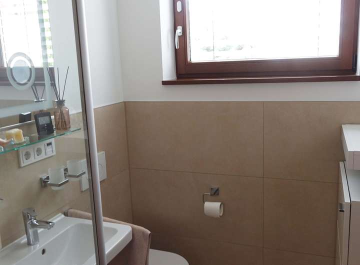 Im UG sind neben dem Hauswirtschaftsraum, der Infrarotkabine, zwei Zimmer, frei nach Gusto nutzbar, auch ein Duschbad mit Tageslicht zu finden. Weiterhin ist hier das große, helle Schlafzimmer mit einem Bad en Suite, dessen Highlight aber der moderne integrierte Waschtisch und die großzügigen Fensterfronten bildet, anzutreffen. Von hier haben Sie einen direkten Zugang zum wunderschönen Garten.