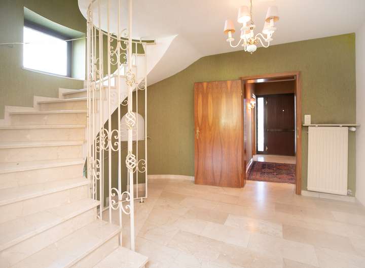 Dieses vollständig renovierte Einfamilienhaus bietet auf ca. 289 m² Wohnfläche und einem ca. 751 m² großen Grundstück ein großzügiges und komfortables Wohnambiente. Das 1979 erbaute Haus befindet sich in einer ruhigen Anliegerstraße im gesuchten Stadtteil Steinberg. Im Jahr 2021 wurden umfang- reiche Renovierungen vorgenommen, die den Charme und die Funktionalität der Immobilie weiter steigern. Insgesamt acht Zimmer, darunter sechs Schlafzimmer, warten auf neue Eigentümer. Vier Badezimmer sowie drei zusätzliche WC sorgen für ausreichend Komfort auch für größere Familien. Besonders hervorzuheben ist der Balkon im Obergeschoss, der sich über die gesamte Hausbreite erstreckt, während im Erdgeschoss eine große, teilweise überdachte Terrasse zum Verweilen einlädt. Eine elektrische Markise bietet zusätzlichen Sonnenschutz. Die Innenausstattung zeichnet sich durch hochwertige Materialien und eine gehobene Ausführungsqualität aus. Im Wohn- und Essbereich wurde ein edles Holzparkett verlegt, das diesen zentralen Bereich des Hauses besonders einladend gestaltet. Die Holz-Isofenster mit Zweifach-Verglasung und Rollladen tragen zur Energieeffizienz des Hauses bei, wobei ein Teil der Rollläden elektrisch bedient werden können. Eine Einbauküche, ein Gäste-WC und ein Duschbad runden das Raumangebot im Erdgeschoss ab. Das Obergeschoss beherbergt 6 weitere Räume, 2 Bäder und 2 weitere WC.