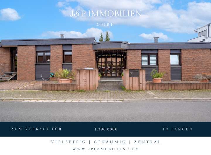 Willkommen in einem Zuhause, das Raum, Komfort und Lebensqualität vereint. Dieser großzügige Bungalow im begehrten Villenviertel von Langen wurde 1984 in massiver Bauweise errichtet und erstreckt sich über ca. 264 m² Wohnfläche. Mit insgesamt neun Zimmern, darunter fünf Schlafzimmer, bietet die Immobilie außergewöhnlich viel Platz – sei es für die ganze Familie, für Gäste oder für repräsentatives Wohnen.