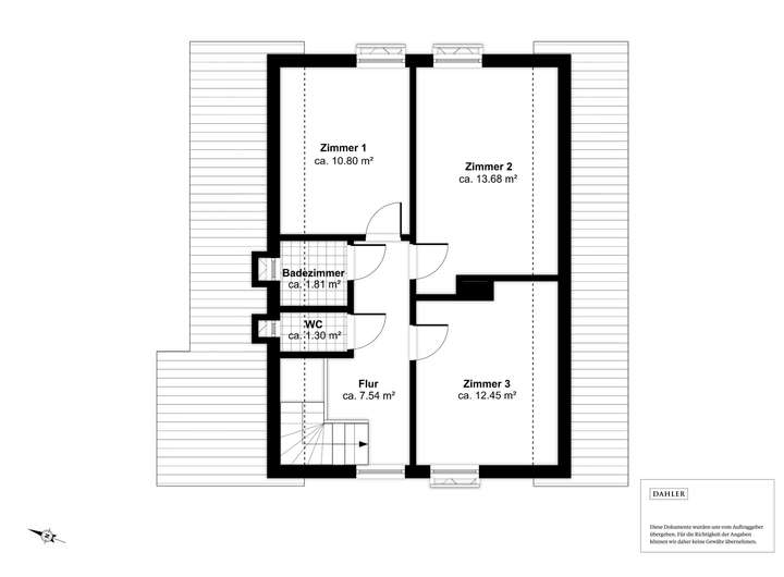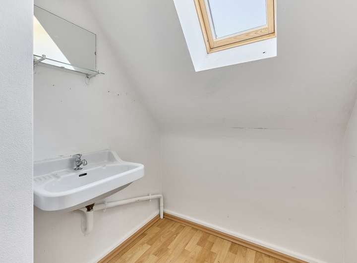 * Obergeschoss: Zwei weitere Zimmer, Gäste-WC und kleiner Raum mit Waschbecken — inklusive Anschluss für ein zusätzliches Bad