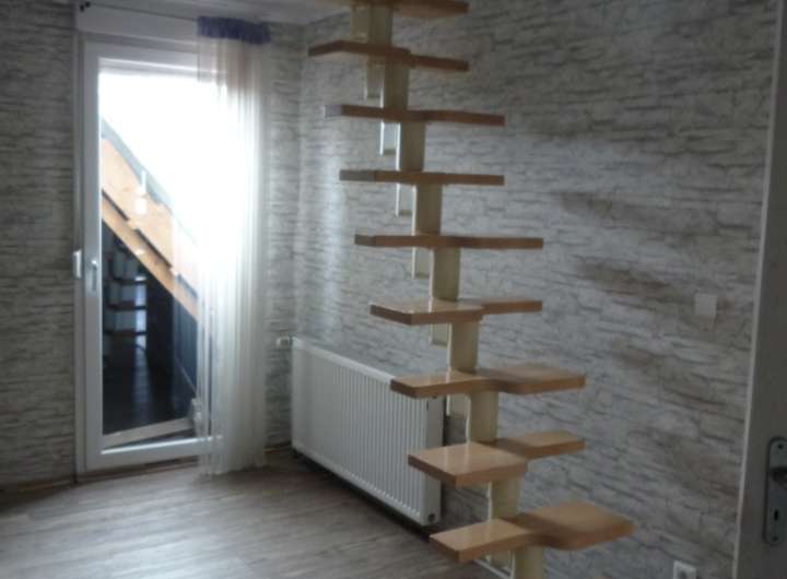 Das Wohnhaus besteht im Erdgeschoss aus einer großen Küche mit großzügiger Einbauküche und Abstellraum, einem Bad und dem großen Wohnzimmer. Das Obergeschoss verfügt über 3 Schlafzimmer, wobei eines durch eine Raumspartreppe mit dem Spitzboden verbunden ist.