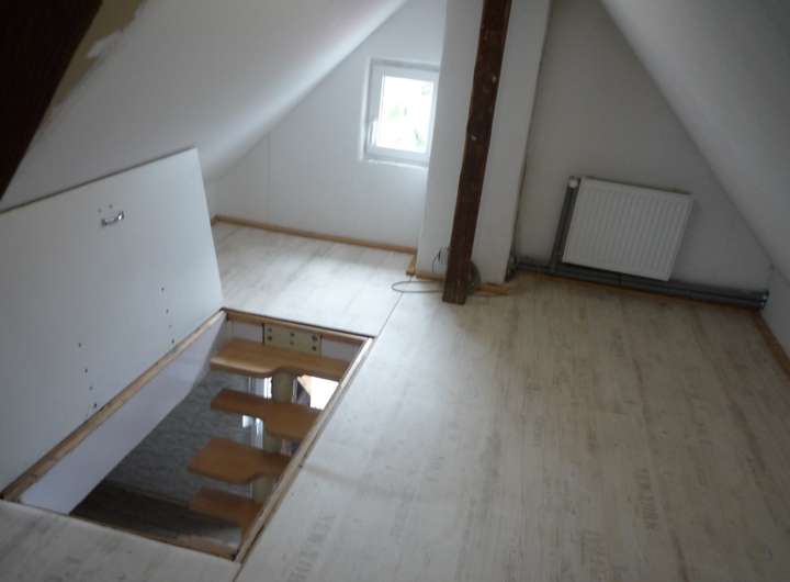 Nutzfläche sind der Spitzboden über den Schlafzimmern sowie die Fläche des Dachbodens