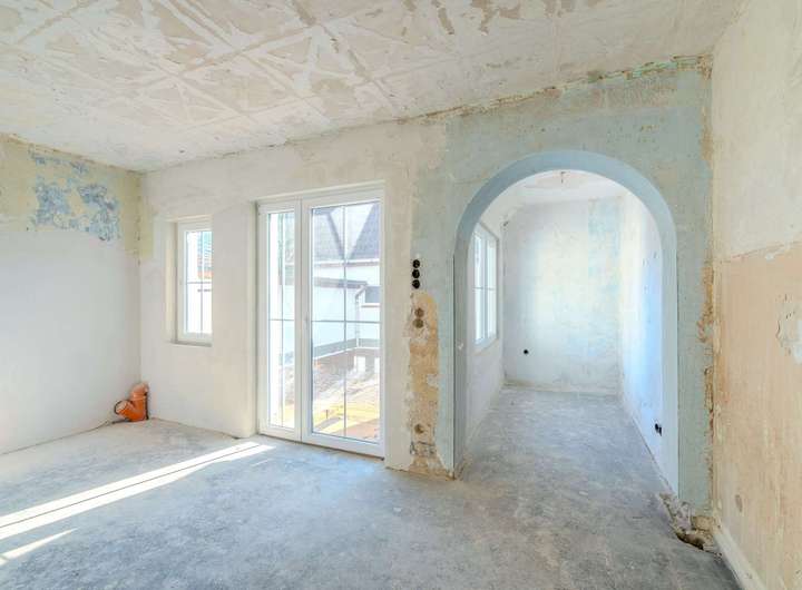 Das Haus befindet sich aktuell im entkernten Zustand und bietet damit die perfekte Grundlage für eine umfassende, individuelle Modernisierung. Der Großteil der Altbausubstanz wurde bereits entfernt, sodass der neue Eigentümer direkt mit dem Innenausbau beginnen kann.