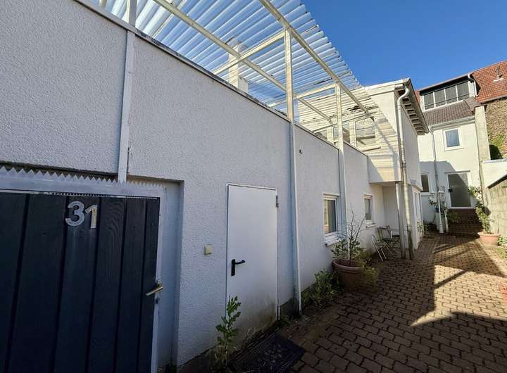 Hinzu kommen ein separater Heiz- und Waschraum (8,80 m²), ein alter Gewölbekeller sowie eine Garage auf einem separaten Grundstück, die im Kaufpreis enthalten ist. Der gepflasterte Innenhof bietet zusätzlichen Charme und Stellfläche.