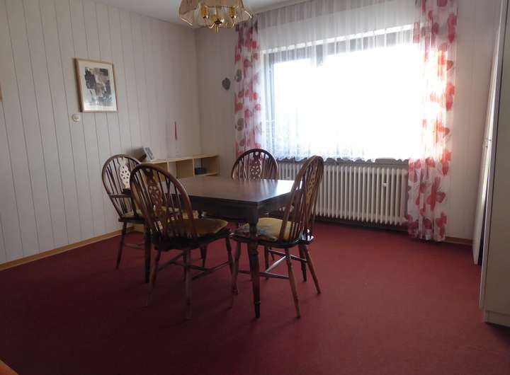Im Erdgeschoss gibt es ein Wohnzimmer mit Ausgang auf die Terrasse. Das Esszimmer kann mit dem Wohnzimmer und auch mit der Küche ohne großen Aufwand verbunden werden.