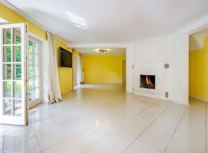 Im Erdgeschoss der angebotenen Immobilie wurden helle Fliesen verlegt, die gemeinsam mit der Fußbodenheizung für eine angenehme Wohnatmosphäre sorgen. Ein Kamin im offenen Wohn- und Essbereich schafft zusätzlich eine behagliche Stimmung – ideal für gemütliche Abende.