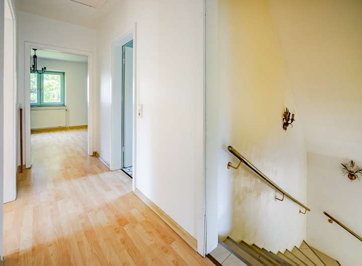 Im Obergeschoss sind sämtliche Zimmer mit einem hellen Laminatboden ausgestattet, der für ein freundliches und wohnliches Ambiente sorgt.