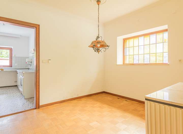 Im Erdgeschoss befinden sich 3 Zimmer. Der Essbereich könnte durch eine einfache Trennung als separates halbes Zimmer genutzt werden. Das teilweise wohnlich ausgebaute Dachgeschoss ergänzt das Raumangebot.