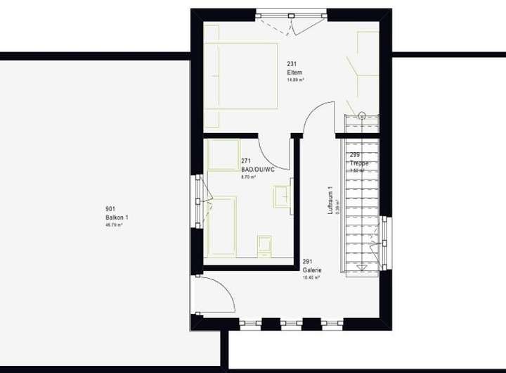- massa Freiraum = Wohnraumhöhe 2,75 m im EG und DG serienmäßig