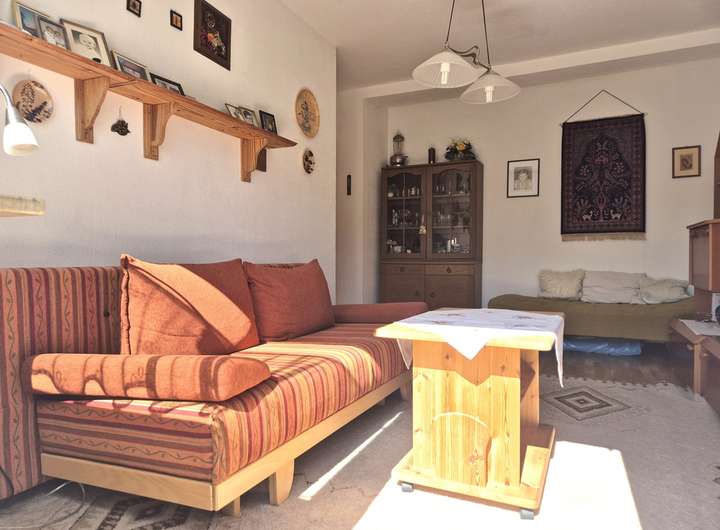 Die Bodenbeläge sind in den Wohnräumen aus Echtholz. Küche, Bad und Gäste-Toilette sind gefliest.