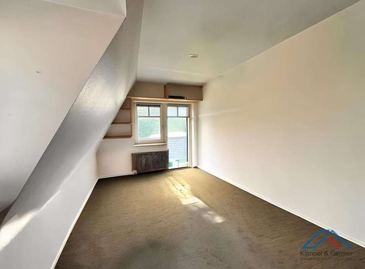 Obergeschoss: Drei helle Zimmer und ein Balkon mit herrlichem Blick ins Grüne.