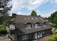 Dach: Das Mansardendach ist mit robusten Betondachsteinen gedeckt, während die Gauben mit edlem Kupfer verkleidet sind.