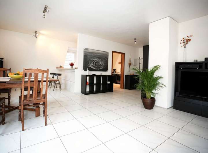 Hochwertige Bodenbeläge: Im Erdgeschoss wurden edle Granitfliesen verlegt, während die Böden im Ober- und Dachgeschoss mit einer Mischung aus Fliesen, Laminat und Teppich ausgestattet sind.