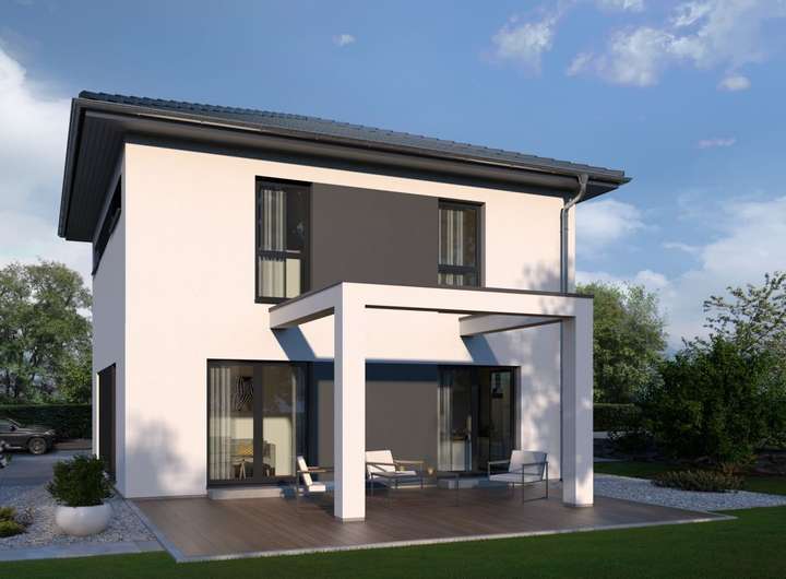 Schon von außen ist die Stadtvilla 14 ein echter Hingucker. Geradlinig und durchdacht präsentiert sich der rund 144 Quadratmeter große Innenbereich: Direkt an das geräumige Wohn-Esszimmer mit Küche schließt sich eine Speisekammer an. Das gewährleistet kurze Wege und eine klare Trennung zwischen Lager- und Zubereitungsort. Mit einer Fläche von mehr als 13 m² ist auch der Dielen- und Garderobenbereich einladend und großzügig geplant. Von hier gelangt man in den Hauswirtschaftsraum und in das Gäste-Badezimmer sowie über eine halbgewendelte Treppe in das obere Stockwerk. Dort haben bis zu zwei Kinder sowie die Eltern ausreichend Platz, um zu schlafen, zu relaxen oder zu spielen. Ein großes Badezimmer rundet das Angebot ab.