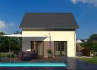 Bauherren mit geringerem Raumbedarf oder kleinem Grundstück finden mit Design 8 die perfekte Lösung. Der Satteldachklassiker in Kubusform überzeugt mit hohem Wohnkomfort und lässt keine Wünsche offen. Größe und reichlich Freiraum offeriert der im Erdgeschoss offen gehaltene Grundriss. Drinnen und draußen scheinen hier förmlich zu verschmelzen, denn gleich vier Türen ermöglichen einen direkten Zugang aus dem Wohn- in den Außenbereich. Und auch in der oberen Etage hält das Tageslicht dank bodentiefer Fenster rundum Einzug. Raumnutzung und -aufteilung sind flexibel: Schlafen, Büro, Kinder, Gäste? Alles ist möglich.
