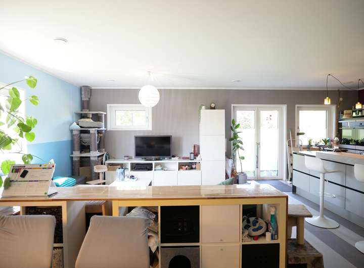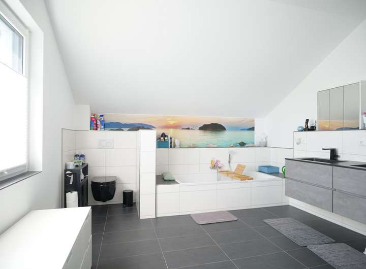 Bereits beim Betreten des Hauses werden Sie von einer großzügigen Diele empfangen, von der aus sich der angrenzende, offen gestaltete Wohn- und Essbereich erschließt. Der nahtlose Übergang von Kochen, Essen und Wohnen schafft ein kommunikatives Zentrum des Hauses, in dem sich die ganze Familie wohlfühlt.