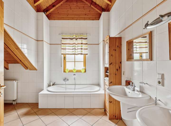 Im Obergeschoss erwarten Sie drei lichtdurchflutete, geräumige Zimmer, welche sich ideal als Schlaf- oder Kinderzimmer eignen. Ergänzt wird die obere Etage durch ein großzügiges Tageslicht-Badezimmer mit Badewanne und Dusche.