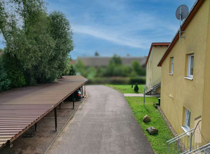 Insgesamt stehen zehn Wohneinheiten mit Wohnflächen zwischen ca. 59,53 m² und ca. 80,42 m² zur Verfügung. Sämtliche Wohnungen sind vermietet – jeweils inklusive eines Carport-Stellplatzes. Hinter den Carports befindet sich zudem eine praktische Abstellmöglichkeit für Fahrräder.