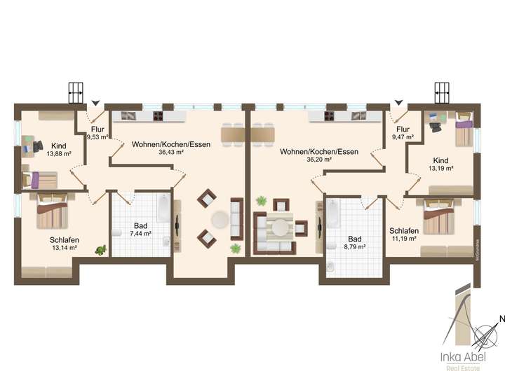 Ein besonderer Vorteil: Die beiden Häuser vermitteln eher das Wohngefühl eines Einfamilienhaus-Konzepts. Es gibt keinen klassischen Hausflur, was nicht nur eine angenehm private Wohnatmosphäre schafft, sondern auch Betriebskosten reduziert.
