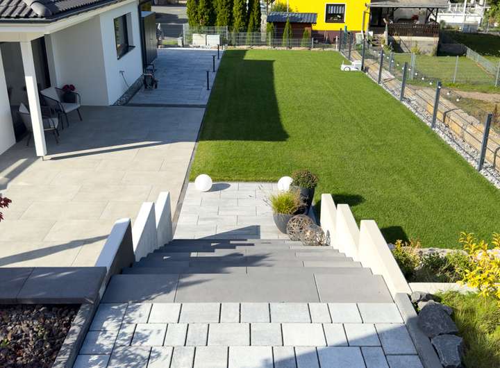 • Mehrstufiger, großteils barrierefreier Außenbereich mit mehreren Terrassen