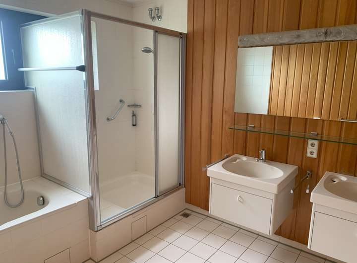 Dieses freistehende Einfamilienhaus mit ca. 170 m² Wohnfläche hat zusätzlich eine 46 m² ELW mit traumhafter Terrasse. Die ELW hat einen separaten Zugang. Das Haus bietet viel Platz für gemütliches Wohnen, Kochen aber auch Arbeiten. Alle Zimmer haben große Schiebetüren und ermöglichen jeweils direkten Zugang zum Garten oder eigenen Balkon. Das Haus, Baujahr 1984, ist solide gebaut und erfüllt individuelle Wohnvorstellungen durch ein repräsentatives Wohnzimmer sowie eine große Wohn-/Eßküche mit angrenzender Frühstücksterrasse. Eine große Doppelgarage für Ihre Fahrzeuge ist vorhanden. Das Objekt kann sofort bezogen werden.