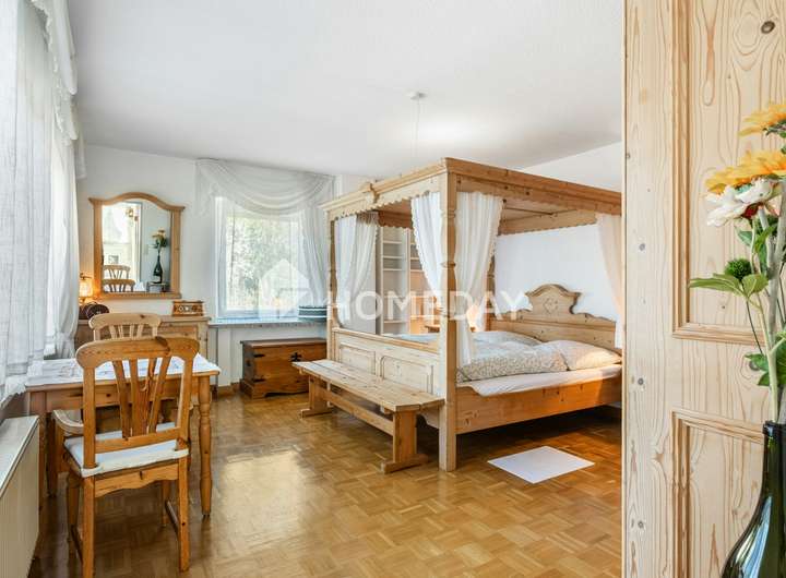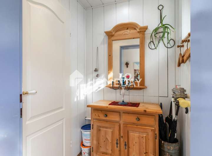 Eine Garage sowie zusätzliche Parkmöglichkeiten oberhalb der Häuser runden das Angebot ab. Auf Wunsch können die hochwertigen Holzmöbel im Kaufpreis enthalten sein.