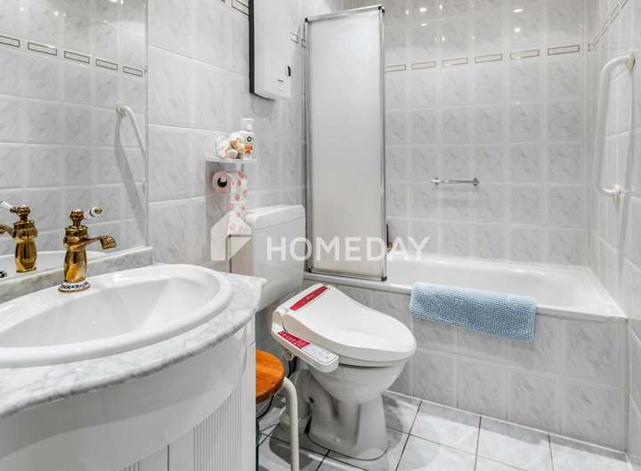 Das Obergeschoss überzeugt mit einem großen Elternschlafzimmer mit Parkettboden, zwei weiteren Zimmern – perfekt als Kinder-, Arbeits- oder Gästezimmer – sowie einem Badezimmer mit Badewanne.