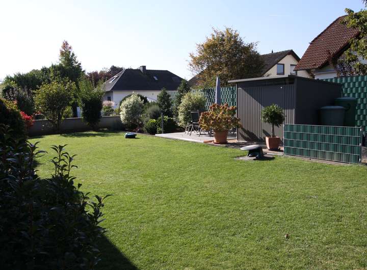 Der große Garten lädt zum Entspannen, Spielen und Genießen ein und bietet ausreichend Platz für Freizeitaktivitäten im Freien.