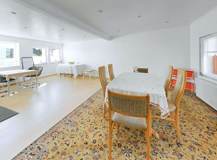 Die aktuell auf drei Ebenen angelegten rund 8 Zimmer verteilen sich auf drei potenziell abtrennbare Wohneinheiten. Dies eröffnet sowohl familiengerechtes Wohnen mit großzügigen Entfaltungsmöglichkeiten wie auch die Realisierung von eigenen Ideen im Bereich „Wohnen und Arbeiten“. Zudem ist die gewerbliche Nutzung möglich – Kleiner handwerklicher Betrieb oder ein Büro im Erdgeschoss.