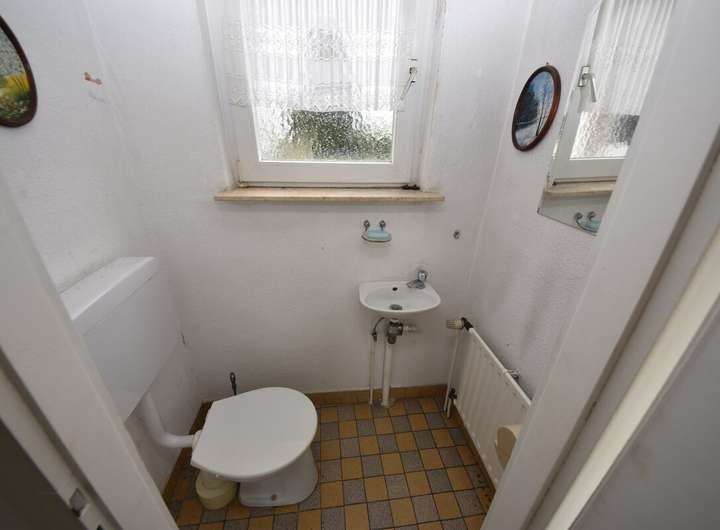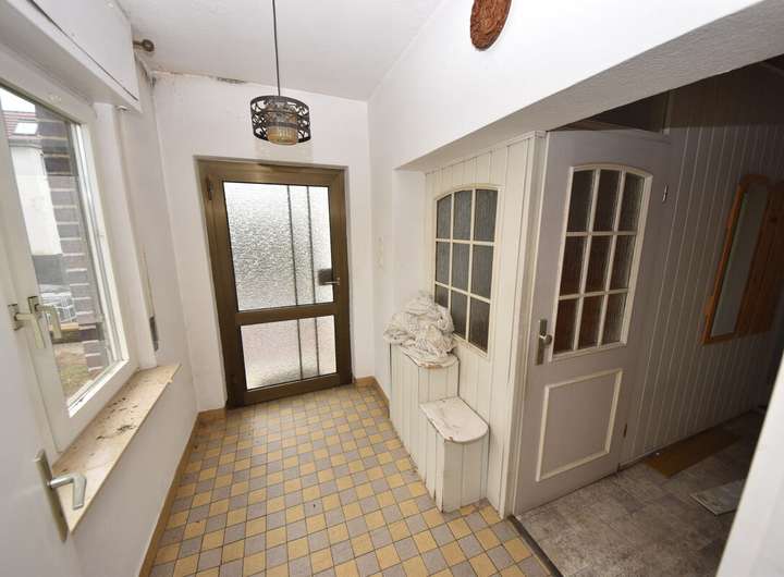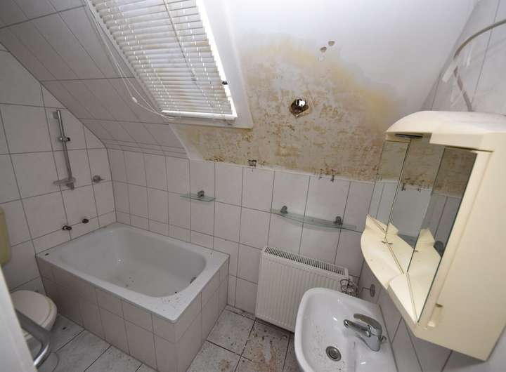 Beheizt wird das Haus mit einer Öl-Zentralheizung, das Heizsystem ist voll funktionsfähig. Die Betondachziegel sind in Ordnung, leider hatte es durch einen Sturm einen Ziegel verschoben, wodurch es aufgrund von Leerstand mehrere Wochen im Tageslichtbadezimmer im Obergeschoss reingeregnet hat. Die komplette Elektrik und Fenster sind erneuerungsbedürftig.