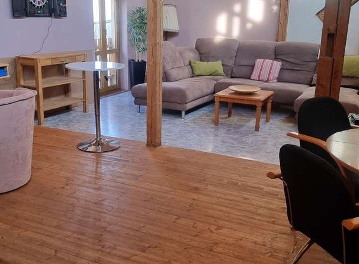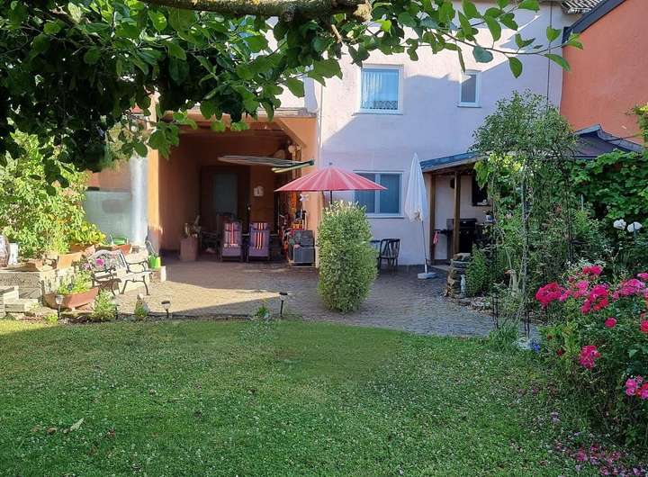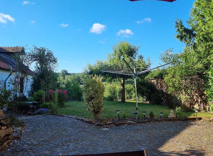 Vor Haus 2 (zum Teil Fachwerk) ist ein Traumhafter Innenhof welcher sich als ein Ort zum Entspannen, Grillen, Feiern etc. anbietet. Kinder können sich hier frei bewegen. Dieser Hof ist durch einen zweite Einfahrt ebenfalls abgeschlossen sowie durch eine Tür mit Haus 1 verbunden.