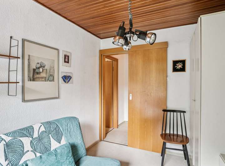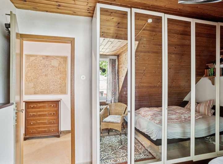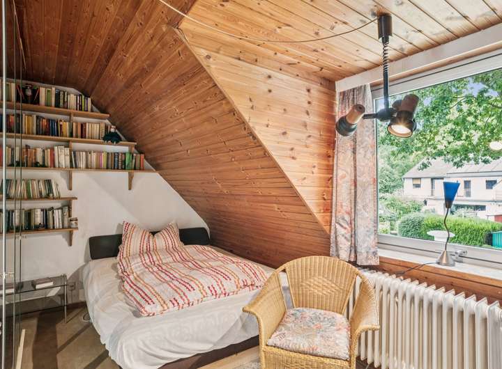 Das 1955 errichtete Raumwunder hat aktuell eine Wohnfläche von circa 75 m², die mit Ihnen noch wachsen kann, plus ca. 35 qm zusätzliche Nutzfläche. Es umfasst vier Zimmer, daneben bietet sich zusätzlich ein ausgebauter Dachboden als Home-Office, Hobbyraum oder Gästezimmer an. Das Haus befindet sich auf einem ca. 93 m² großen Grundstück mit gepflegtem Garten und unverbaubarem Blick ins Grüne. Außerdem hat es zu 1/110 Anteil an der 22.000 qm umfassenden parkähnlichen Gemeinschaftsfläche.